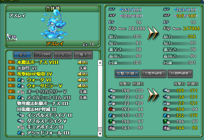 ●秘石が高い 同種族合体やランクアップは覚悟した方がいい。