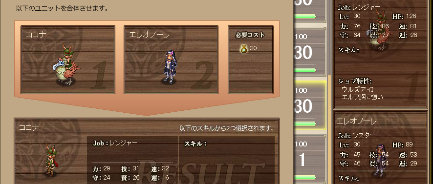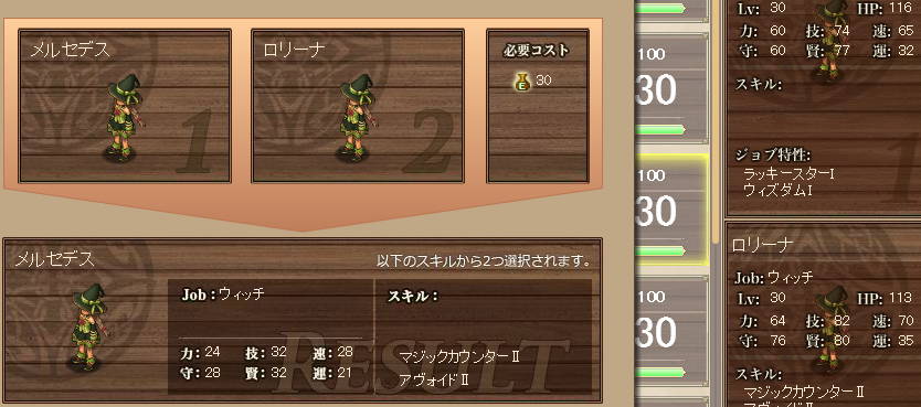すると……まぁご覧のとおり、賢と技(と速) が高くなり、Wキャス持ちのが出来る。
